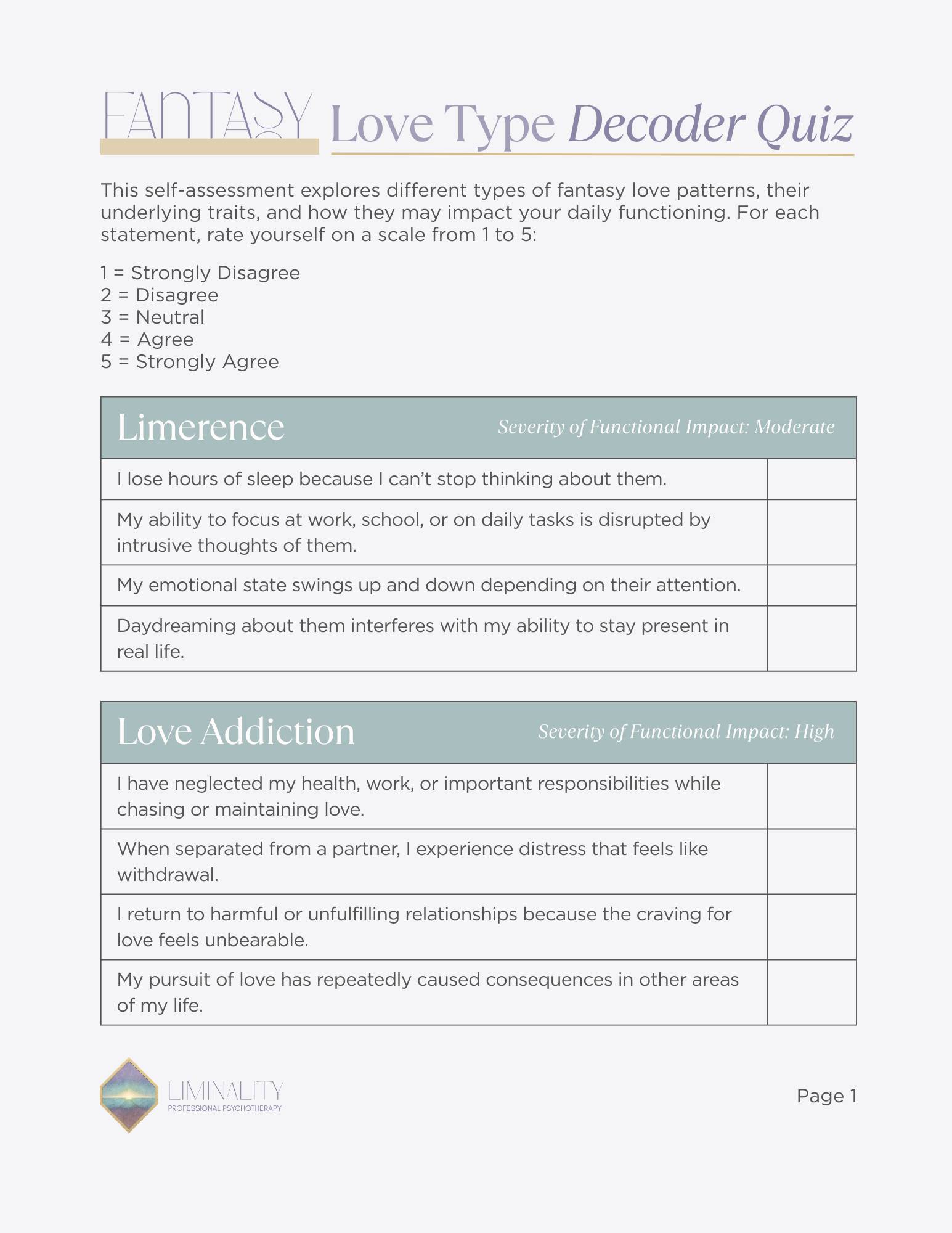 - Identify your unique Fantasy Love Type